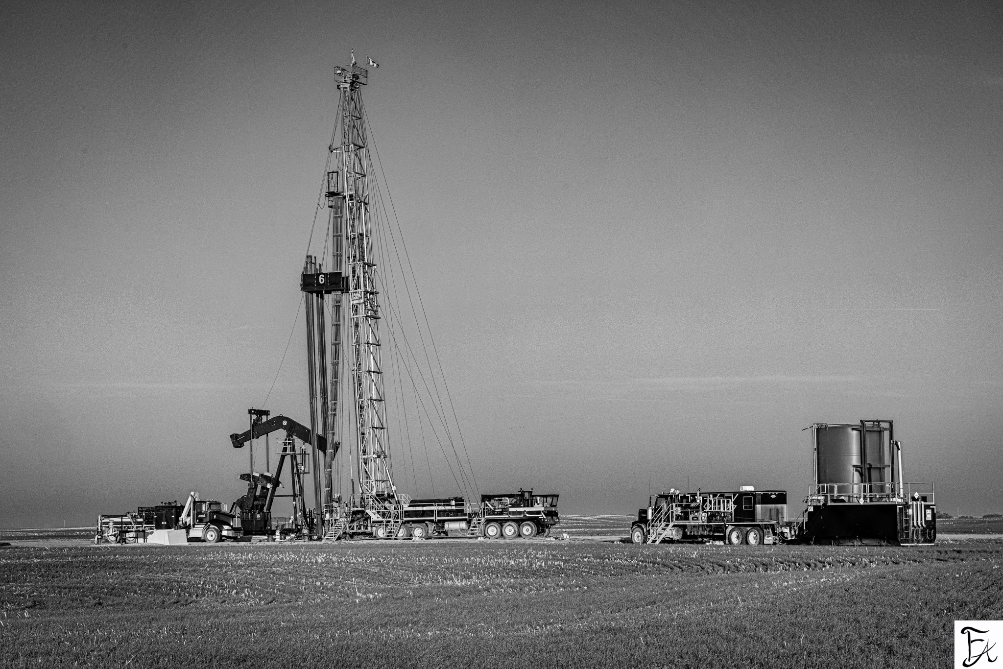 In this monochrome portrait, the rig sits silent—steel bones against a pale sky. Idle, it waits. Without its crew, it is nothing but a monument to potential. Rig 6 is not about machinery. It’s about the hands that bring it to life.