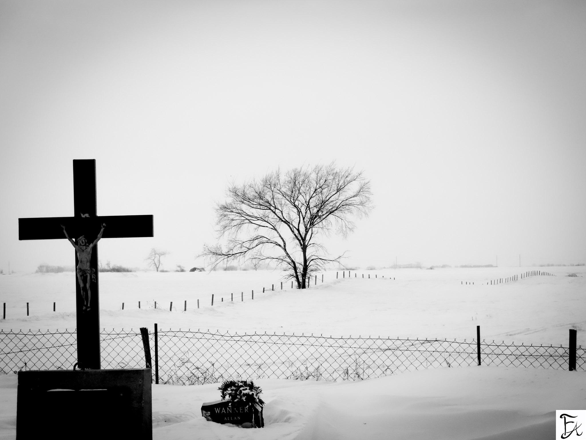 Three days before my mother passed, I stood in a field of snow and raised my camera. I didn’t know then what I was capturing. I only knew the stillness, the starkness, the way the sky and earth blurred into one endless white. In the foreground, a cross bearing Christ. A grave just behind. And in the distance, a tree—bare, skeletal, but not gone.