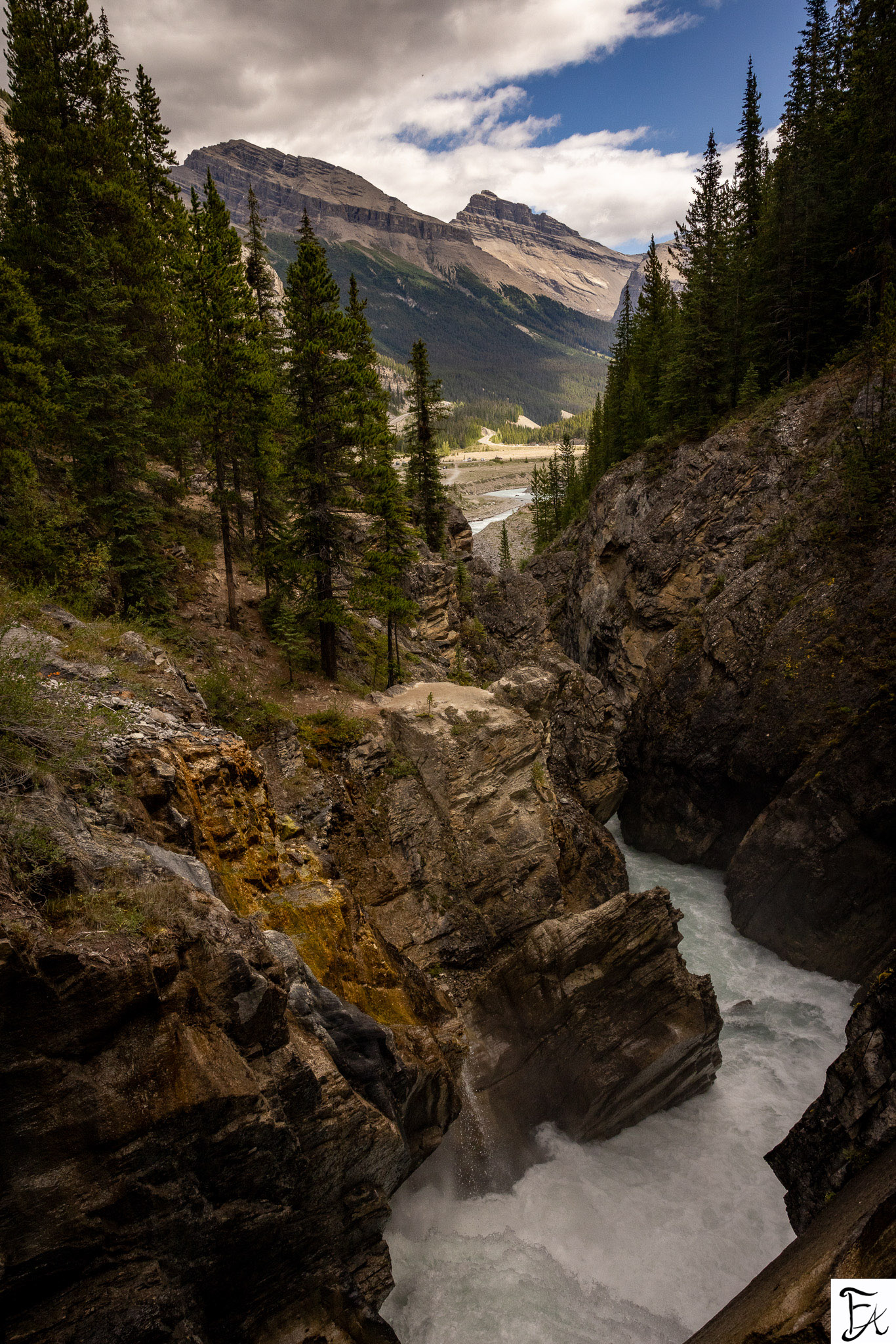 This photograph captures the tension between appearance and truth. The landscape is breathtaking: open skies, distant peaks, and the illusion of peace. But within the folds of the earth, the water tells another story—one of force, erosion, and relentless motion.